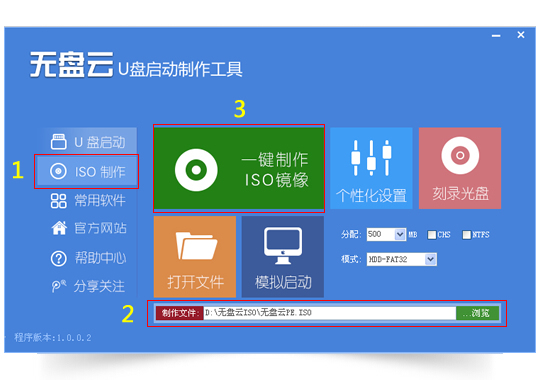 2.点击左图1所示进入“ISO制作”的镜像制作界面。