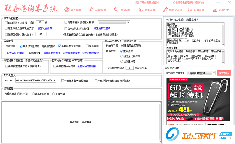 支持前台隐藏窗口发单及导购不影响电脑任何操作,窗口完全隐藏!大淘客必备!100个群同时开启发单导购不频繁!节约成本节省不必要的开销!支持网页协议后台发送!