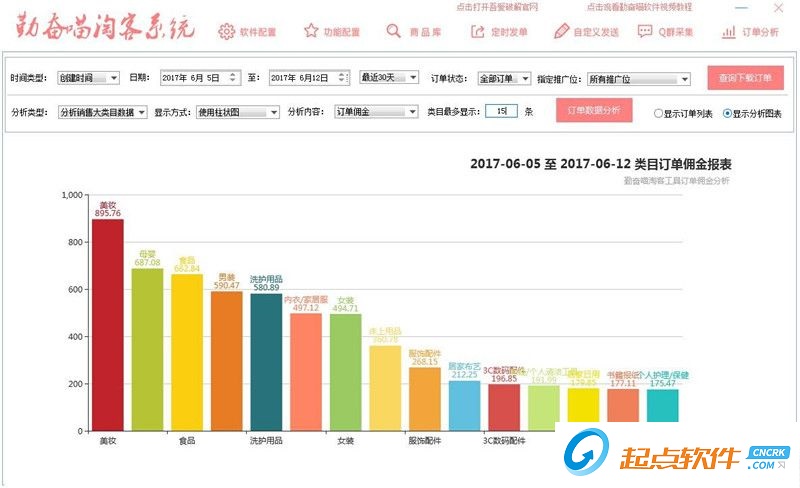 全网首发!通过解析观察收入状态,爆款类目,购买人群!展现方式(扇形图、柱状图、折线图)可以分析类目、时间、销量、佣金、比例、等...帮助淘客节省统计时间!直观显示出需要的任何数据!节省大部分时间!