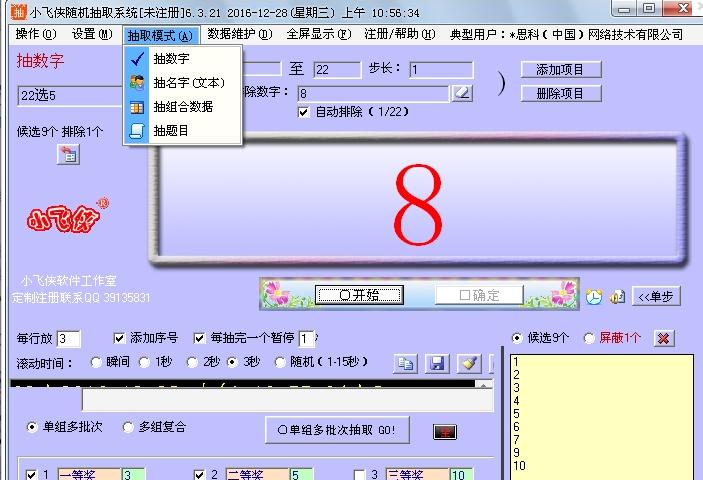 1、您可任意定义候选内容范围,并支持档案管理。2、可选择“抽数字”、“抽名字(文本)”、“抽复合数据”和“抽题目”4种模式。