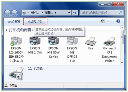 第二步:选择“添加打印机”;