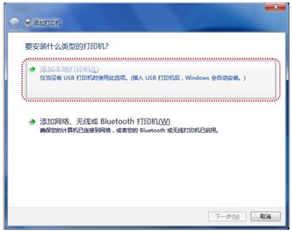 第三步:选择“添加本地打印机”;