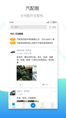 汽配圈app是一款专为汽车配件从业人员打造的社交软件,该软件为用户整合了汽配行业全网最新最全的资源,使你能够更好的满足客户的购买需求,还可以跟同行共享资源与人脉,让生意发展的更好。