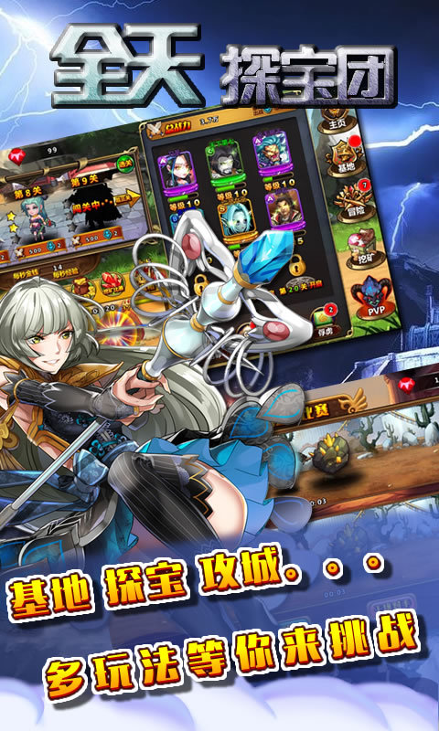 九尾+路飞+孙悟空+关羽+玛丽兄弟,这是个什么组合?这是你的专属《全天探宝团》,多达300多位各路超级英雄听候你的差遣。由你组成超强探险队,挑战各路妖魔鬼怪,勇闯魔窟密道,探索遗迹古堡,只为寻求那传世的珍宝。无论你是在吃饭,还是在睡觉,又或是在上厕所,你的《全天探宝团》全天7X24不间断全自动寻宝,绝不错过一个宝箱,不放过一个杀怪练级的机会。真正得做到不浪费一分一秒,就能让你轻松体验成为游戏扛把子的成就感。