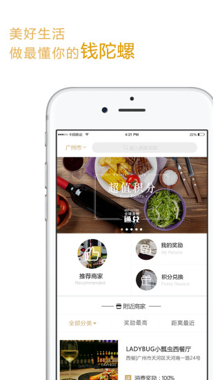 钱陀螺核心四大功能,为您提供:【掌上精彩】集合城市热门商圈店铺,LBS大数据定位,推送您身边的优质好店;