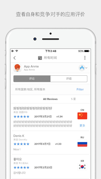 评级与评价:通过评价与评级,按应用版本、国家/地区、日期范围等追踪用户反馈。