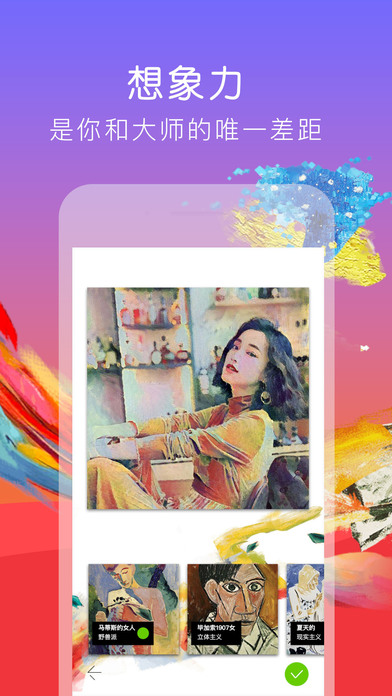 versa app内置了多种不同艺术风格供用户选择。不管你欣赏现代派还是印象派,表现主义抑或浮世绘风格,毕加索、梵高、蒙克、葛饰北斋等大师versa app都能助你一「点」而就,秒入画魂。
