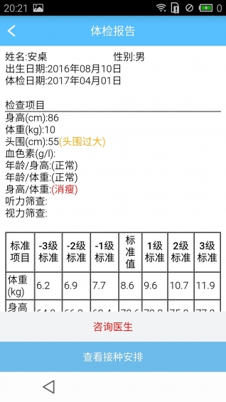 另一端连接着0-14岁孩子的全部家长,家长收到医院孩子的医院检查信息,及时了解到孩子健康动态信息,记录孩子生长轨迹,孩子生长发育发生偏差如生长偏离(太轻、太重、太高、太矮 )时提醒并指导家长;收到儿保体检和预防接种及疾病复查提醒通知;收到大数据分析后准确个性化指导科普文章;每个孩子可签约固定的家庭医生,还可选择咨询各科专家,享受到24小时*7天在线咨询服务。