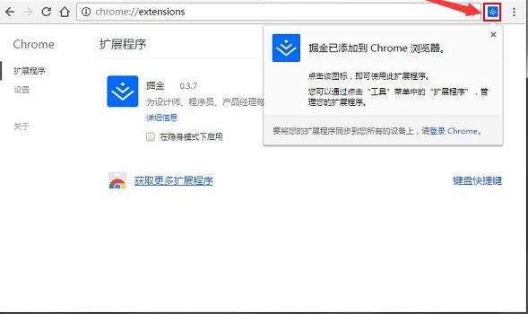 5.用户这时候只需要点击添加按钮就可以把该离线Chrome插件安装到谷歌浏览器中去,安装成功以后该插件会立即显示在浏览器右上角(如果有插件按钮的话),如果没有插件按钮的话,用户还可以通过Chrome扩展管理器找到已经安装的插件。