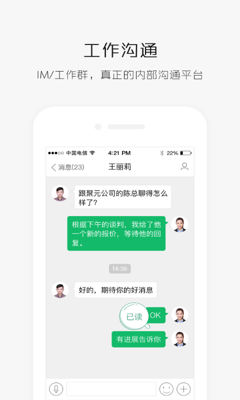 【IM/工作群】已读未读,一目了然;支持多终端文件传输,随时文件共享。