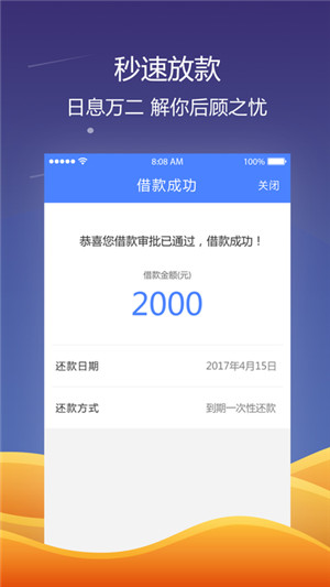four:借款成功秒放款。