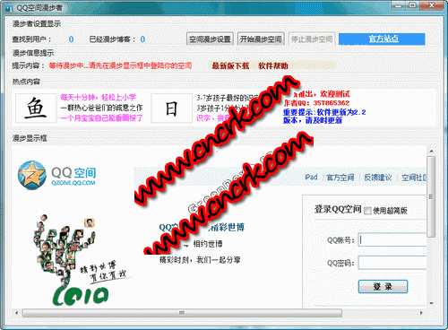 简单易用的QQ空间漫步者是一款QQ空间软件,在随机访问QQ网用户空间的同时可以自动添加关注。长时间使用本软件将大量的增加你QQ网空间的访问量,是一款宣传自己和产品必备的优秀软件。