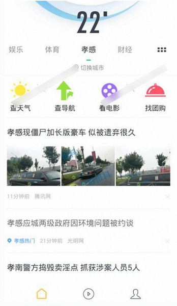 1、打开UC头条APP,在首页即可观看到最新的新闻资讯,同时如果在本地页面中还可以查天气、查导航、看电影、找团购哟;