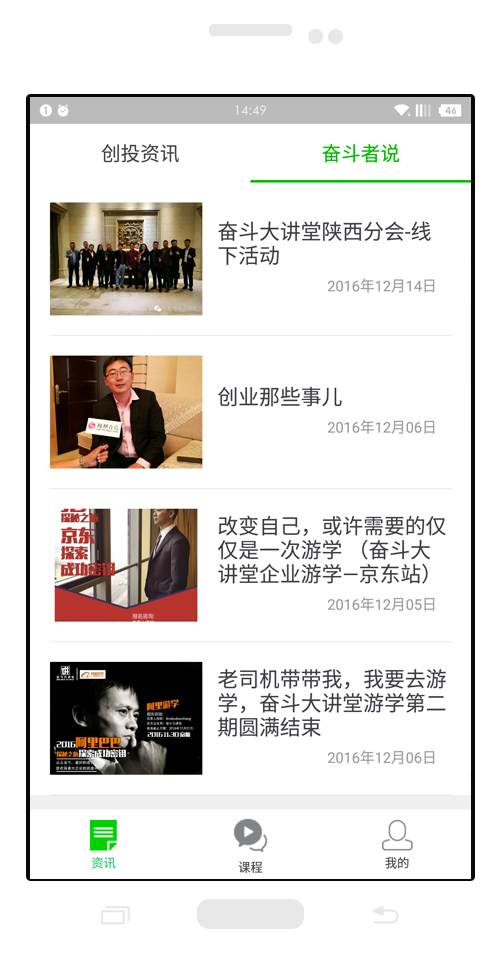 奋斗大讲堂是奋斗传媒旗下的一个创业家在线学习的课堂,每期邀请商界大咖、创业新贵、专家学者带来1小时精彩授课,并互动15分钟,打开一种全新的视野,为创业者拓展一条清晰的创业思路。每年将录制50期创业课程,每周2期的创业实战分享。为帮助全球更多想创业的人找到创业的方法,让创业变得更加简单。