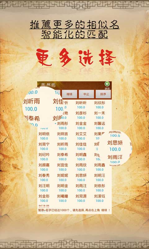 根据用户输入的条件自动你筛选五格,五行,生肖80分以上的名字;指定字或者按照辈份取名.自动生成高分名字;相似名自动匹配,美易取名系统将自动为用户区配200个以上的相似名.