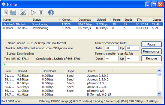 Halite 是一个开放源代码的BT下载客户端,它最大的特点是你可以用手机进行远程遥控
