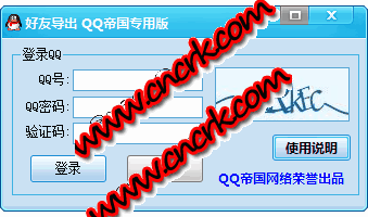 使用方法也很简单 登录下,右边有功能自己看下。 QQ好友的昵称可能导出不了,如果是QQ群可以把昵称导出来。 群必须是自己有加进去的啦。这点大家应该明白。 (可能部分杀毒误报,用户请注意判断....)