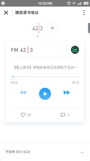 此外,“微信读书电台”小程序可以直接在微信中打开与播放,退出后仍可继续播放音频,再也不用来回切换。