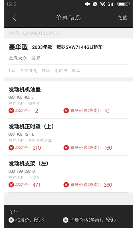 ⑦4S店配件价格查询服务;