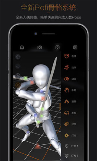 【高效UI与丰富功能】高效快捷的操控来至人性化UI设计,上百种功能让想象与使用不受束缚。【全新Pofi骨骼系统】全新人偶骨骼符合人体工学操控方式,在最短时间内完成人偶的无数pose。