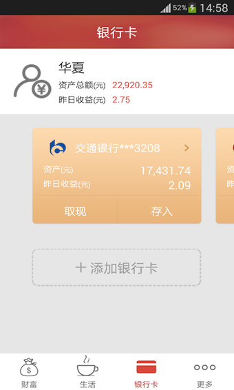 随心用:您可以使用活期通的信用卡还款、余额理财、跨行转账、还贷款等功能,理财从此更轻松。
