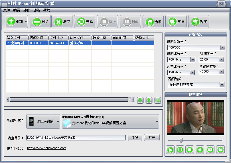 3、支持将各种格式的AVI、MPEG、MP4、3GP视频转换为转换为iPhone手机视频格式。