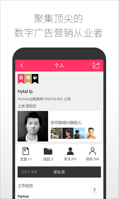数英iPad版是一款高端的数字广告营销、创意设计平台。数英iPad版编辑团队每天原创及收录专业作者优质内容,内容涵盖市场营销、广告策划、创意设计、电子商务、移动互联网、新媒体、信息技术等各数字相关领域。数英iPad版聚集顶尖的数字广告营销从业者,数英用户之间高频互动,你可以对内容收藏、点赞、评分、评论、分享、关注、私信等。