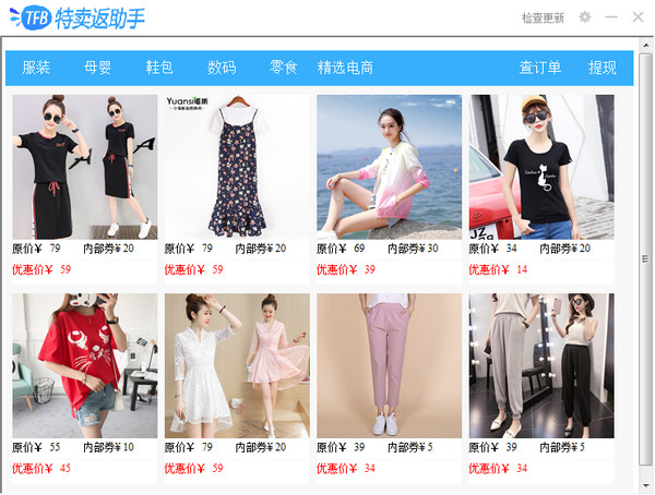 特卖全网特卖是特卖返主打功能,每日精选特卖商品包含服装、母婴、鞋包、数码和零食5大类目,特卖商品领卷后购买再返利,让你的荷包一省再省。