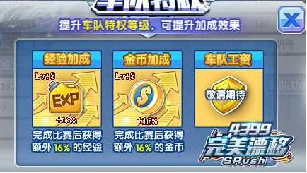 3、加入车队,每场比赛还能获得车队经验加成,车队等级越高可获得的经验加成越多哦!