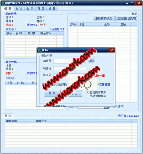 QQ牧场宝贝 V2.00 不带广告绿色免费版 1. 监视自己的牧场随时全自动对自己的牧场操作