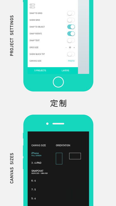 设计图形及图标、设计文字样式,编辑文字版式、添加描边及填充、拉伸,缩放及旋转、排列对象、对齐网格、复制并排列图层、设置hex和RGB颜色、转换并覆盖照片、添加图案及渐变、设置画布尺寸及网格间距、导出位图和矢量图、保存项目,稍后编辑、在任何地方分享、直观的UI!