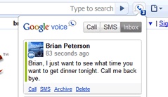 5.除了以上google voice的功能,它还有邮件提醒的功能,如果用户收到了新的消息就可以直接在chrome的右上角看到该消息推送