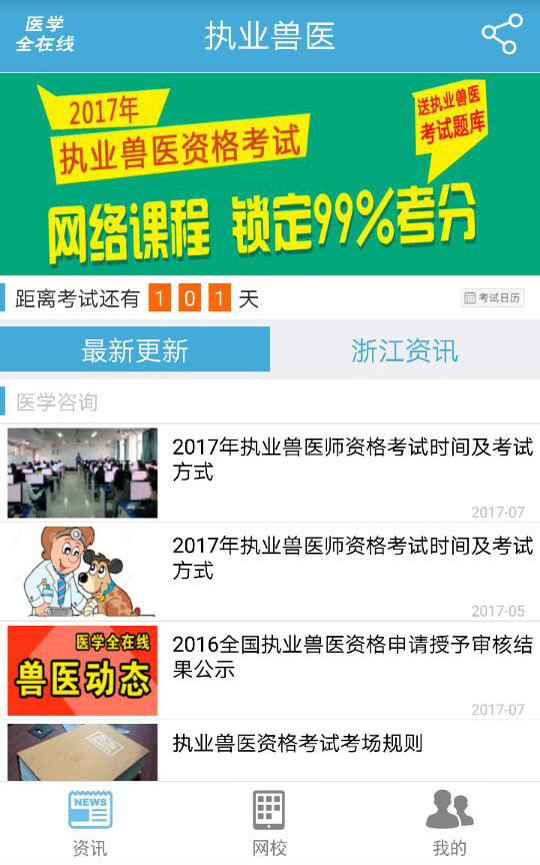 【涵盖多种考试】医学全在先拥有丰富而全面的考试资源,APP涵盖执业医师、执业护士、卫生资格、医学职称、住院医师、执业兽医、等多种医学考试内容,每天都有实时的考试资讯为你呈现。