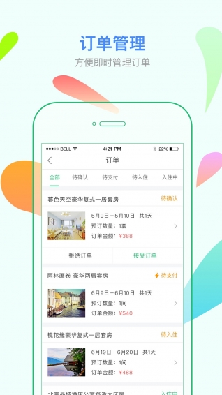 可以实时接受或拒绝订单,方便的查阅和管理各个订单。