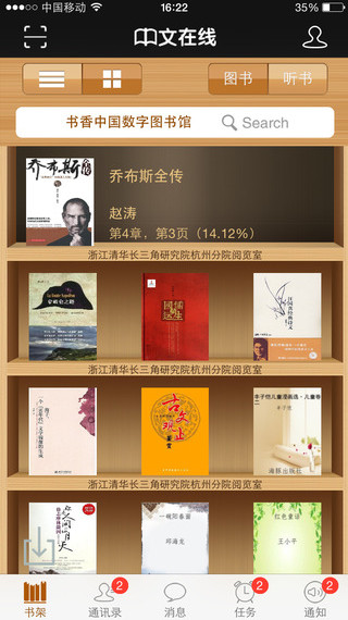 电子图书资源由中文在线提供,首期精选10万6千本电子图书和听书,您可以随时阅读或听取文学、小说、经济、管理、家居、婚恋、育儿、家教、时尚、美食、科普、旅游、传记、历史、艺术、法律、政治、军事、文化、建筑、医学、少儿、农林、体育、学科资源等方面的电子书和音频文件。即时通讯模块集成了通讯录、消息、任务和通知四大子模块。除涵盖了联系人管理、点对点消息等常用通讯功能。更适用于学校、企业、政府单位等组织,可以作为组织内的信息发布和人员管理平台。