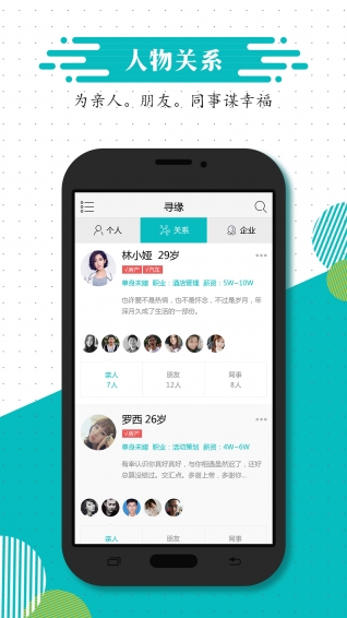 【圈子对圈子】打破传统个人对个人的交友模式,引入圈子对圈子的形式,使得每个会员的情况都可以从至少一个会员那里了解到其基本信息、为人品质等,使婚恋更加放心;【亲友印像】会员可以为自己的亲友发布亲友映像,其表达形式可以是文字/音频/视频,为Ta发布一则亲友映像,让更多人直接、快速、真实的了解到你所关心的人;
