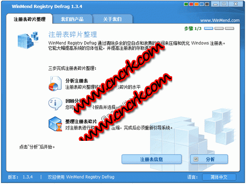 WinMend Registry Defrag(注册表碎片整理) 1.4.5 汉化绿色版 注册表碎片整理软件WinMend Registry Defrag 是一款免费的注册表碎片整理与清除工具。它安全地重建注册表索引,清除注册表中浪费的空间,以便 Windows 系统与应用软件可更快的找到所需要的数据。Windows 注册表经过整理后,你会发现系统运行速度有明显提升。