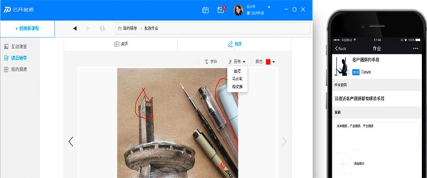 当老师想对学员进行针对性的辅导时,可以通过平台针对参加课程的,或者关注老师频道的任何一个学员发送辅导任务,学员收到任务后可以通过文字,图片,照片,语音等多用方式进行任务的完成,老师可以通过文字,画笔,图片,语音等多种手段为学员进行针对性的辅导。