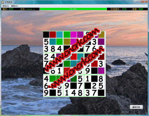 彩色数独是一款集数独游戏、组合数独、求解数独于一身的益智游戏,老少皆宜。