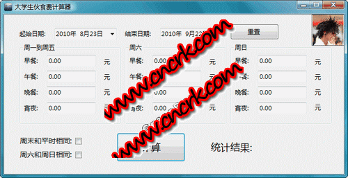 大学生伙食费计算器是一款免费绿色软件,单文件可直接运行,无需安装!可以快速计算出生活规律的大学生一段时间内的伙食费消耗,早餐,午餐,晚餐和宵夜分别计算