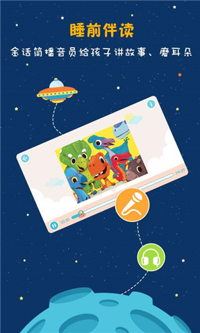 故事飞船是一个培养儿童对阅读热爱、启发想象力的线上互动故事图书馆,平均每三天更新一个故事,每年提供至少100个精品绘本故事、益智游戏,并将有趣的游戏、互动加入到故事中。每个故事都配有专业播音员优美、动听、趣味盎然的朗读,让孩子在美好的体验中迅速提高词汇量和阅读能力。