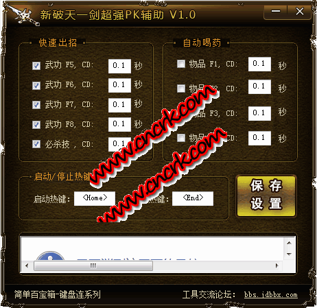 此工具可以帮您自动快速的释放出您需要的招式,让你PK时候不再为手速太慢而懊恼。解放你的手指和键盘,破天PK必备。