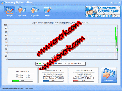 Memory Optimization是一款内存优化软件,内存优化工具,发展成为一个强大而易于使用的系统应用程序,可以优化你的电脑。 优化内存的使用标签窗口可以让你看到的CPU内存和页面文件使用率水平。 设置内存优化窗口将允许用户设置显示模式和分配热键。