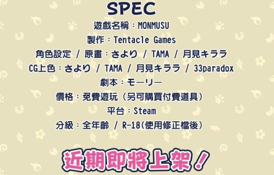 《魔物少女》可以使用免费的R18补丁,开启那啥场景,一般向的事件CG都有R18版本。游戏还将登陆Steam平台,具体上架时间未知。