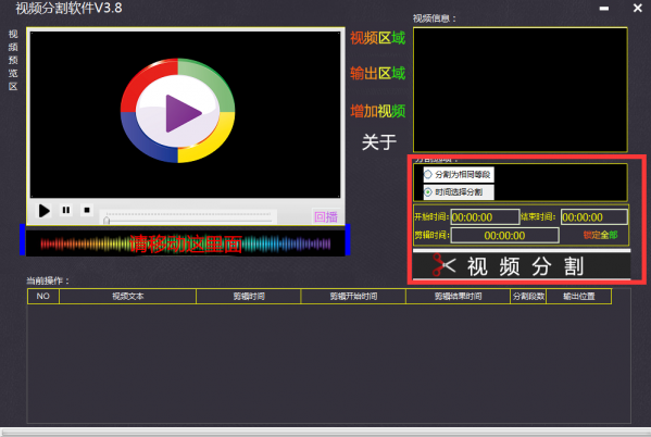 1、在视频分割区域进行时间选择分割,精确到秒。