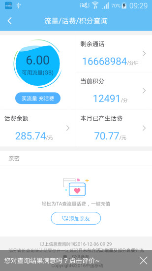 4、享服务:查询数据准确,实时掌控手机费用使用情况,办理业务迅速,轻松享受一键办理、快速充值。