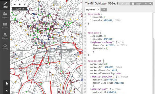 tilemill这是一款专业的地图绘制软件,tilemill内置了绘制地图必备的素材可帮助用户绘制出各类地形可以显示山体阴影、分层设色,让你清楚的将分界、海洋、陆地、山脉描绘出来。【软件特点】