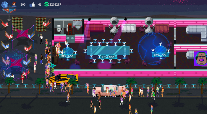 《疯狂派对大亨(Party Hard Tycoon)》是由Pinokl Games制作,tinyBuild发行的一款策略模拟类游戏,游戏中玩家将摇身一变成为一家夜店的老板,玩家需要通过不断的经营让自己的夜店生意越来越好,作为年轻人的娱乐场所,夜店中一定要有一些能够吸引年轻人的东西,不过就和其他任何生意一样,想经营好一家夜店也不是一件容易的事情。除了设计好夜店中的元素之外,还会遇到许许多多不同的突发状况,如何处理这些突发状况也将影响到夜店生意的好坏。