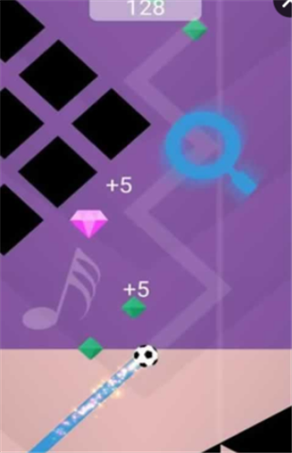 游戏里最重要的玩法就是点点点啦,在适当的时机点击屏幕,改变球球的前进方向,躲避各种黑色障碍物,挑战一关又一关,让我们来测试下你的反应手速吧。游戏有多首好听的音乐背景,不同的球球,多样的皮肤可供选择,一起来挑战吧。