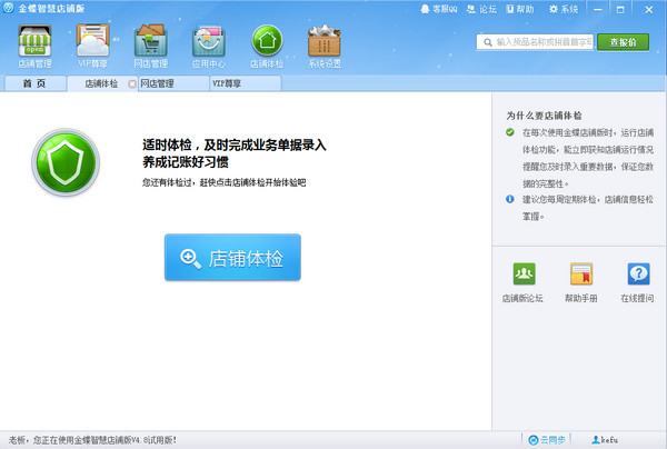 管人(店员权限管理)、管账(资金流水明细)、管货(货品报价及开单)、管客户(客户资料管理、会员管理),全方位管理,让生意蒸蒸日上!可由金蝶智慧记直接升级至智慧店铺版,原有数据不受影响。手机、电脑、微信全平台支持,一个账号通用各个平台。【软件功能】